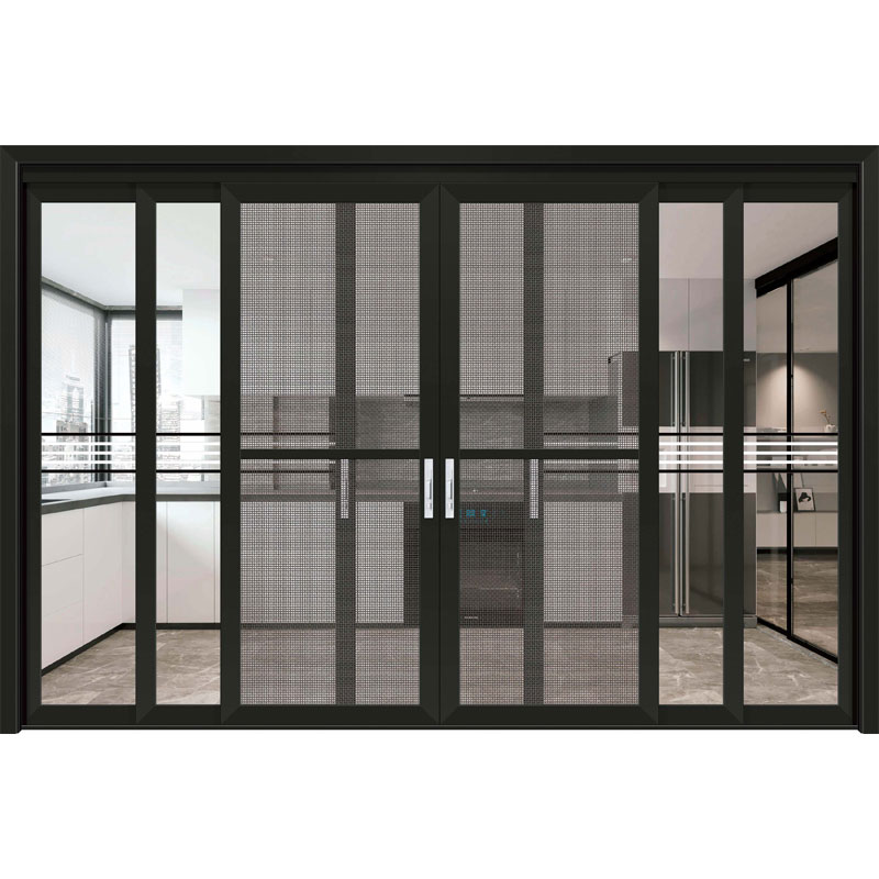 Sieťové dvere z hliníkovej zliatiny je možné tlačiť a ťahať, zložiť do jedného krídla a potom otvoriť naplocho k stene. Tieto vchodové dvere môžu zlepšiť využitie priestoru v malých bytoch. Tieto dvere sú vhodné najmä na balkóny. Na izoláciu komárov a umožnenie prirodzenej cirkulácie vzduchu používame presné oceľové pletivo. Dvere PT majú zvyčajne jednoduchý a elegantný dizajn s hladkými líniami a možno ich zladiť s rôznymi štýlmi dekorácie. Jeho veľká plocha skleneného dizajnu môže zvýšiť vnútorné osvetlenie, urobiť priestor transparentnejším a svetlejším a zvýšiť celkovú krásu.